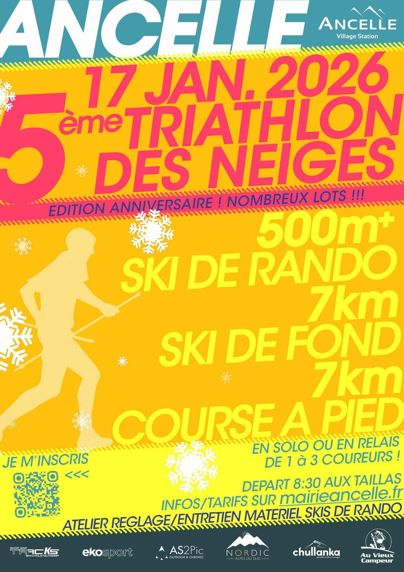 Veuillez trouver les informations concernant le triathlon des neiges d'Ancelle qui aura lieu le samedi 17 janvier à Ancelle.